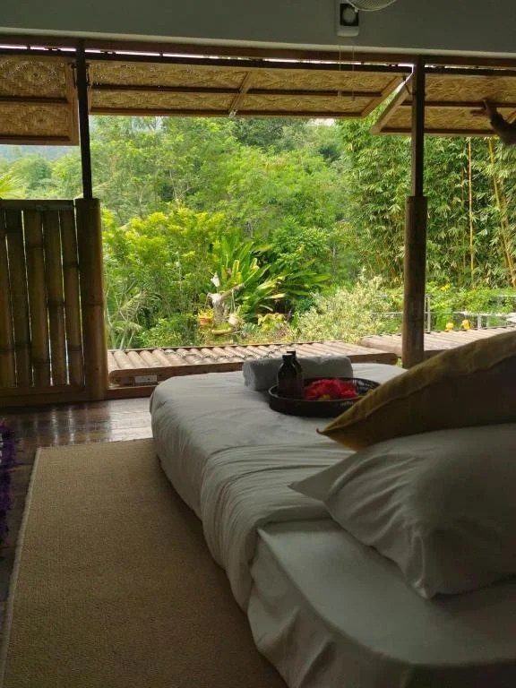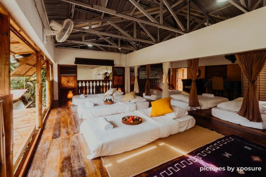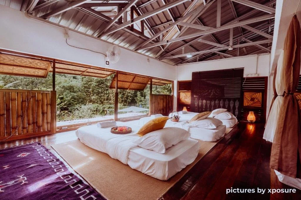 Accommodation at Tirtha Quddus is an integral part of the experience, designed for immersion in the natural surroundings. Guests will stay in rustic yet comfortable wooden and bamboo lodges.