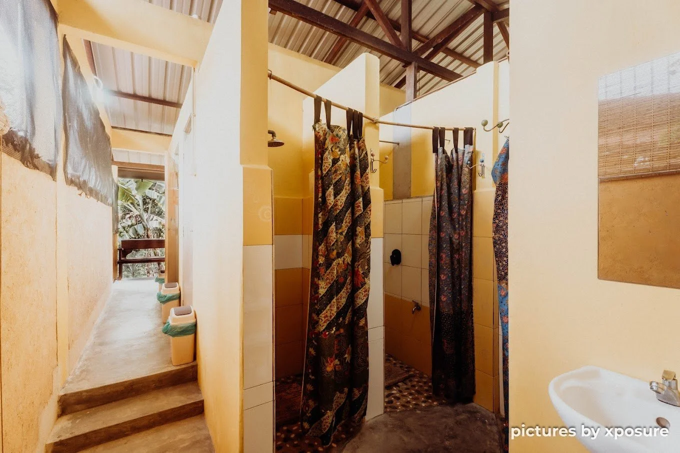 These structures are thoughtfully designed using natural materials and passive cooling principles to ensure the air remains cool and dry, even during the high moisture season, providing a serene and comfortable retreat. The classrooms and event space is also designed with full ecological principles and adobe materials.